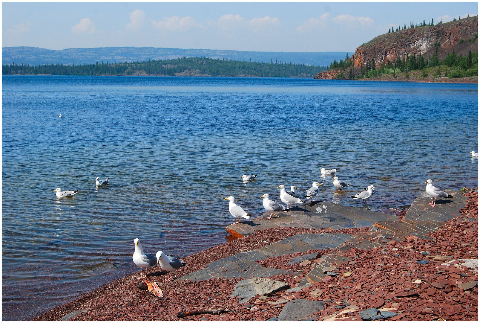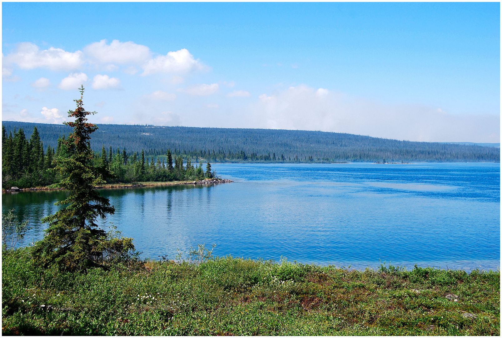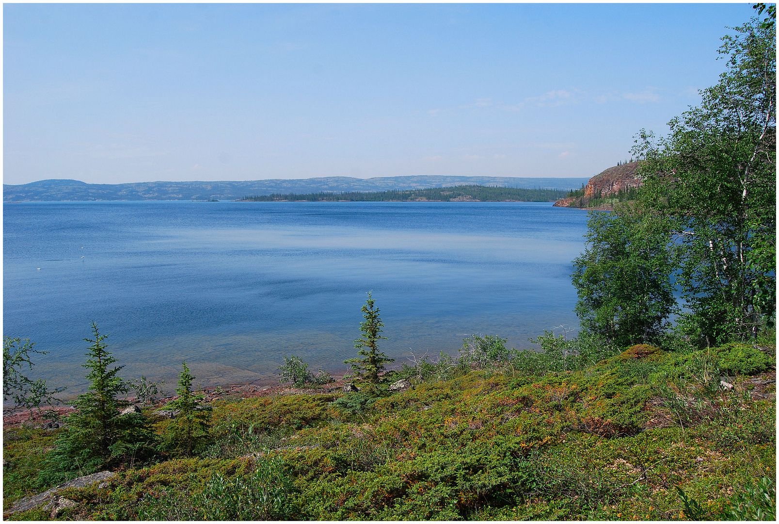 Taking in the sites Bren and I walked a little of downtown Yellowknife then followed the Niven Nature Trail leading to our friends Dan and Susan’s home. There baby Briar shared her blueberries with us, while Dan and I caught up with our lives over a drink. Relatives staying with them as well, it was Josh; whom might have lived in every “Fort” across the North (Fort Nelson, Smith, McMurray), who passed along some great fish and hunting stories from his years. Later Brenda and I retired under the midnight sun exhausted from our travel.