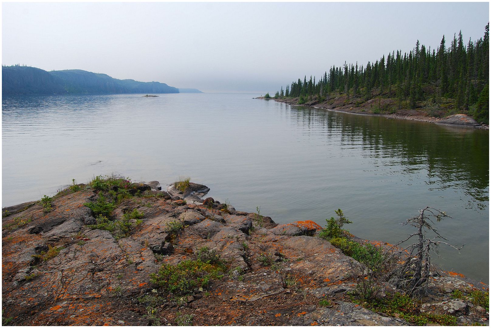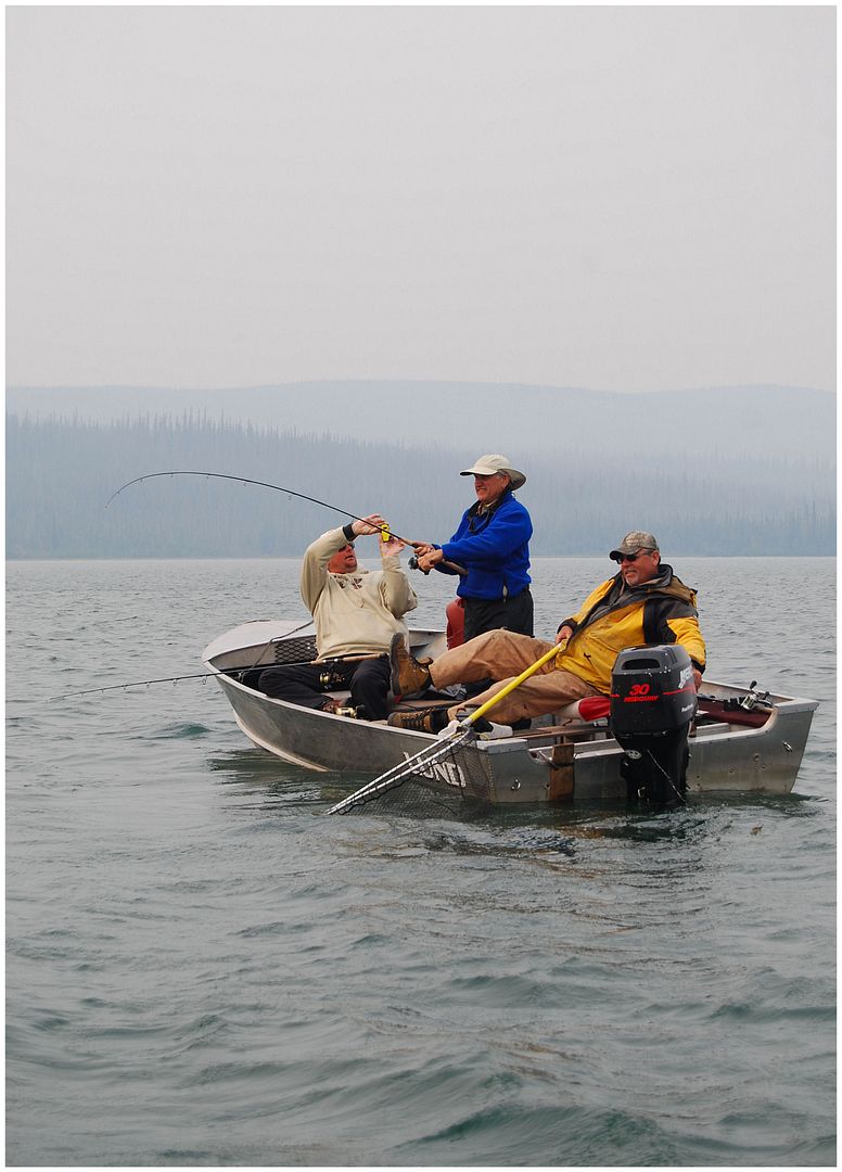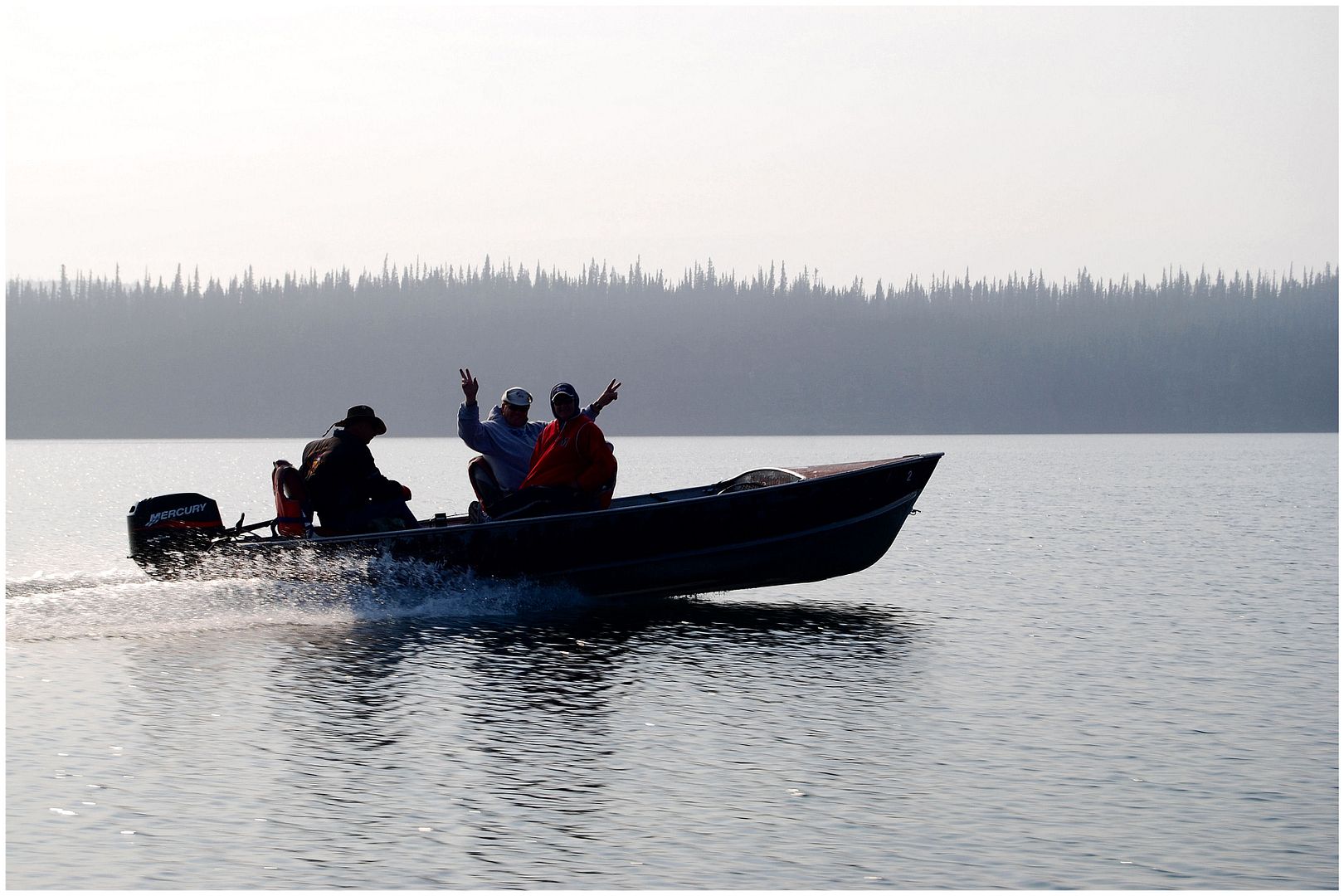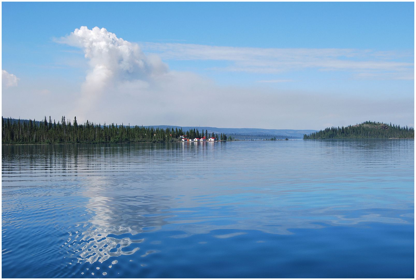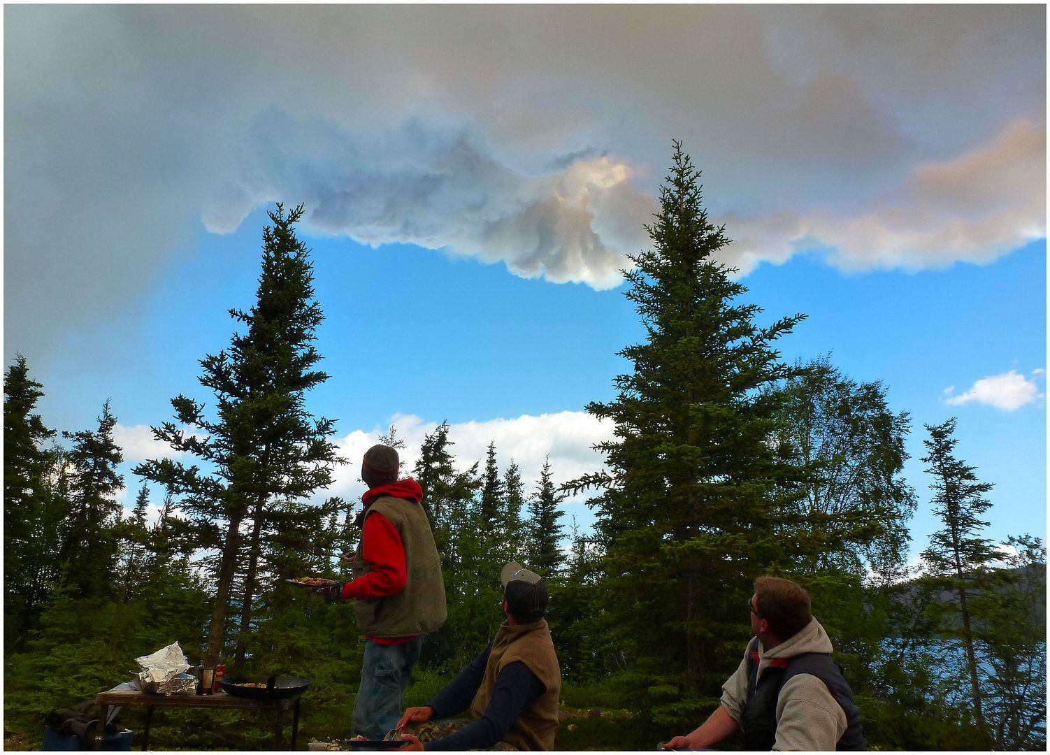 Inside the main building all were treated to a quick lunch while receiving our fishing licences, room and guide assignments. Dying to just unpack and get fishing I barely noticed the fire fighters trickling into camp and setting up their base for work. Only a few miles away, fires were creeping along the ridges behind the grounds and airstrip, heading in our direction. Finally from a boat throttling away to first laker stops, did we catch a glance at the impending danger nearby, and the incredible landscape that was threatened all around us.