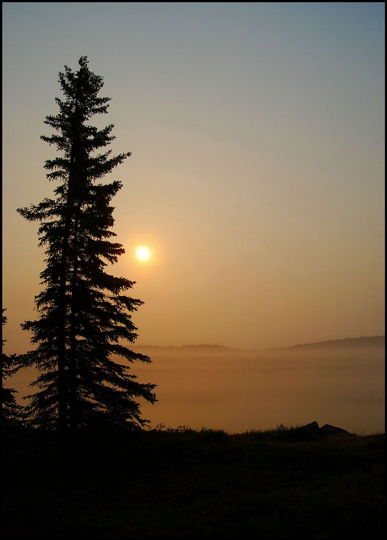 Morning under a smokey haze the lake lay calm as glass, rippled only after the odd slurp of some hungry grayling.