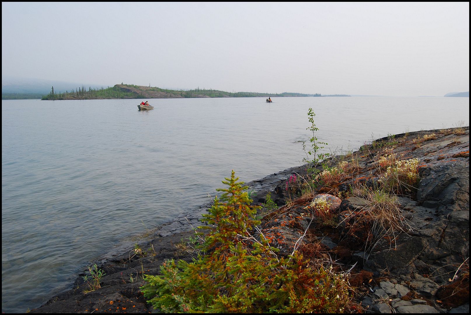 Hurricane Arthur roared to the southeast, the prairies below were soaked in floods and to our destination in the NorthWest Territories, a hundred or more forest fires burned. So much environmental destruction happening all around, but through Calgary and on to Yellowknife, much of my relief pondered only on what other-worldly fishing may come ahead.
