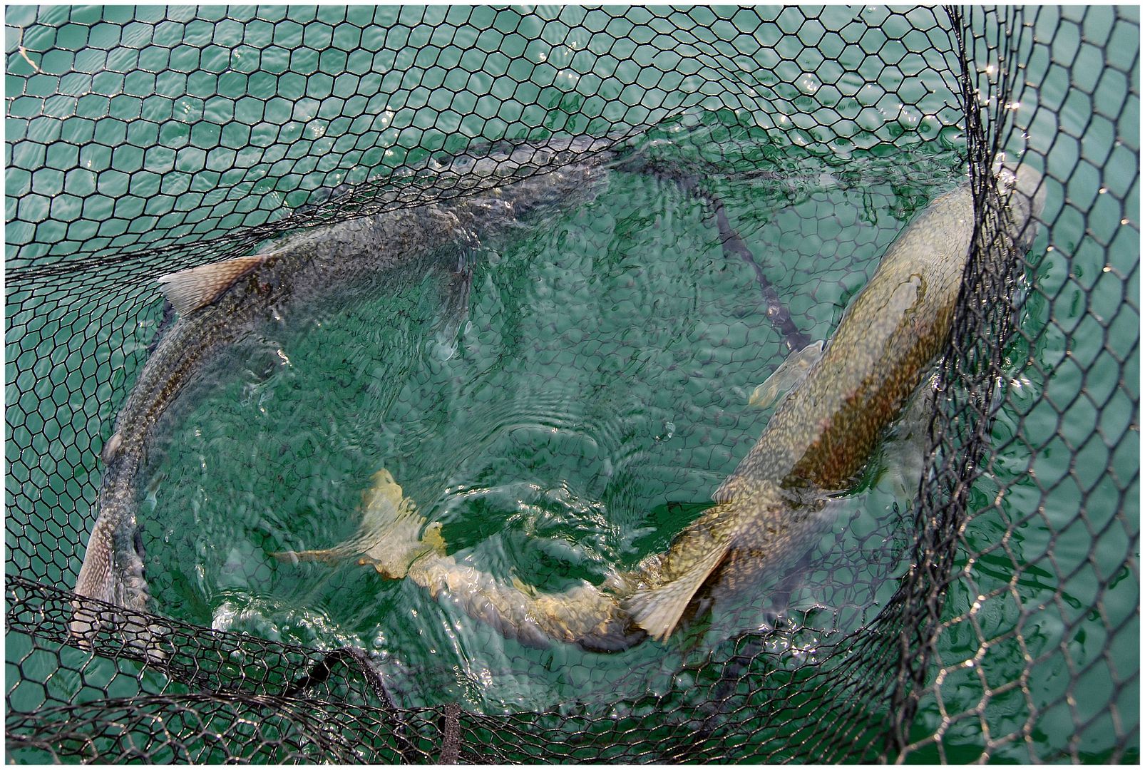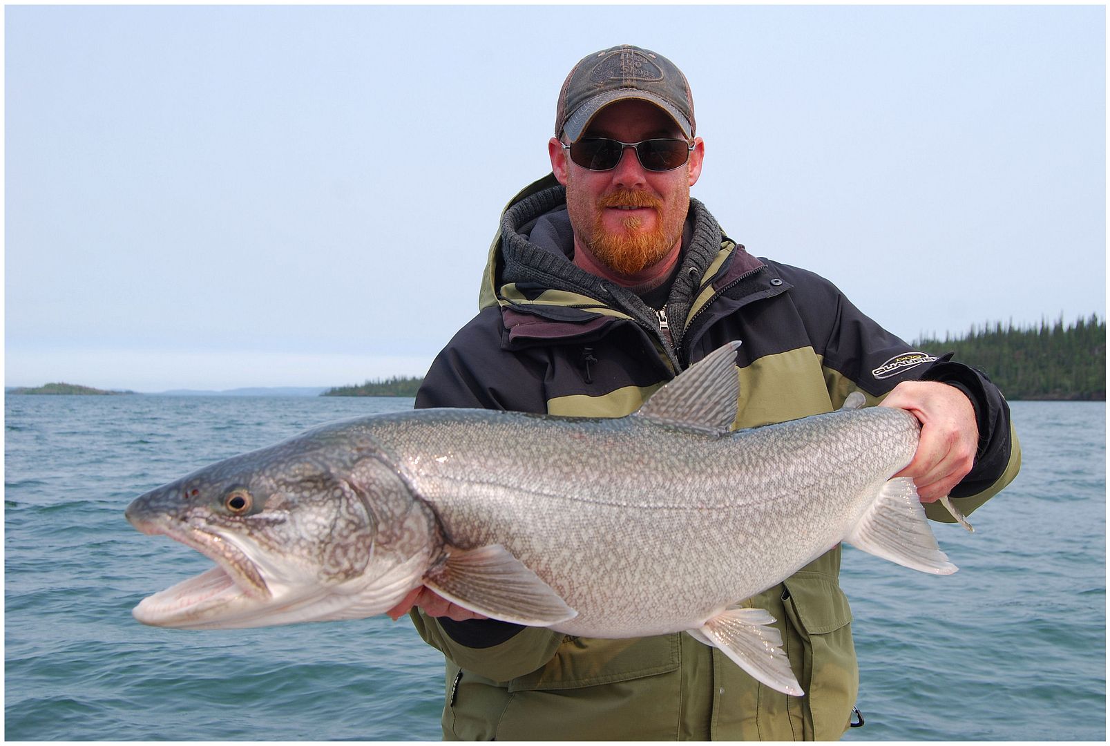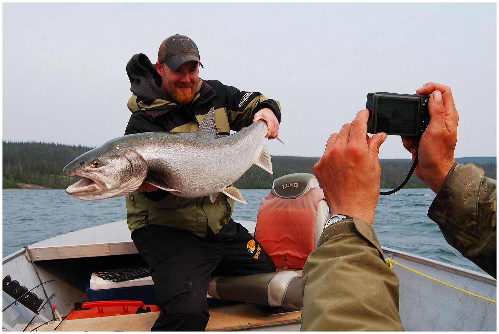 Picking our way home we found this point of many names holding a healthy tonne of actively biting fish. The first day refusing to take pictures of myself with any laker less than twenty pounds, we put a thorough beating on many fish weighing in at the 12 to 18 pound range. Big white bucks and plastic shads were the damage-doers, and Bren at this point was catching lakers two-to-one over me. Greys and reds both, these two different lake trout strains were feeding together, and it was hard but necessary to take a time out from catching fish and capture some of these stunning lakers with the lens.