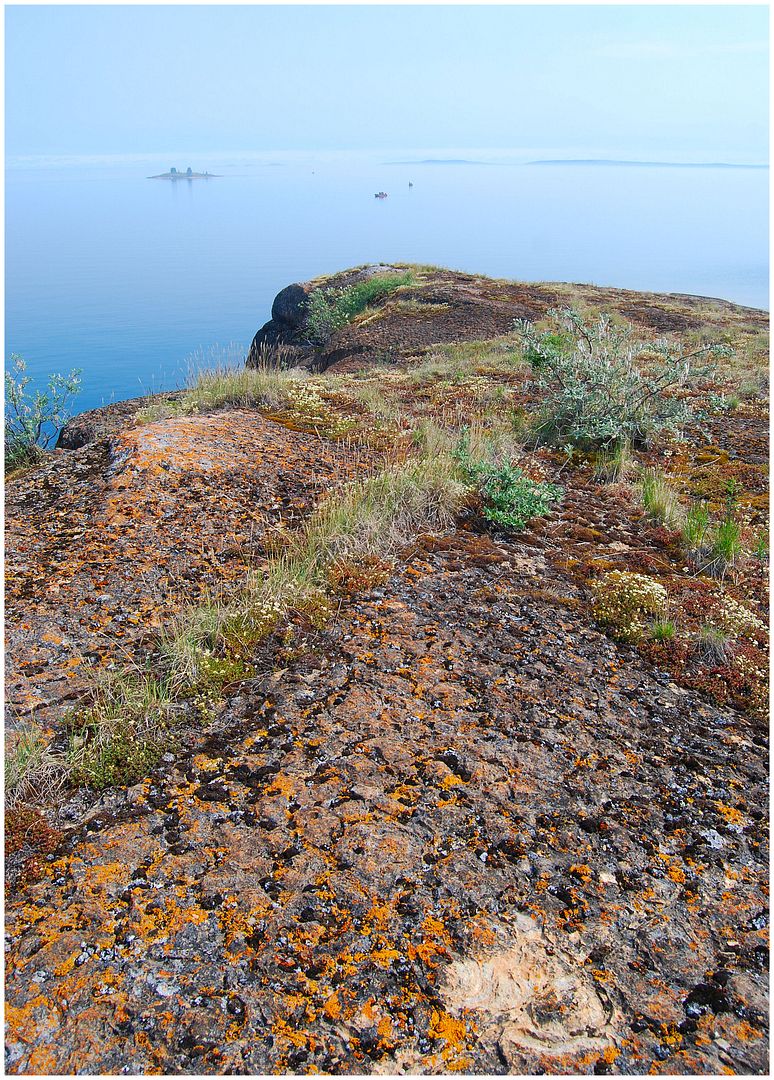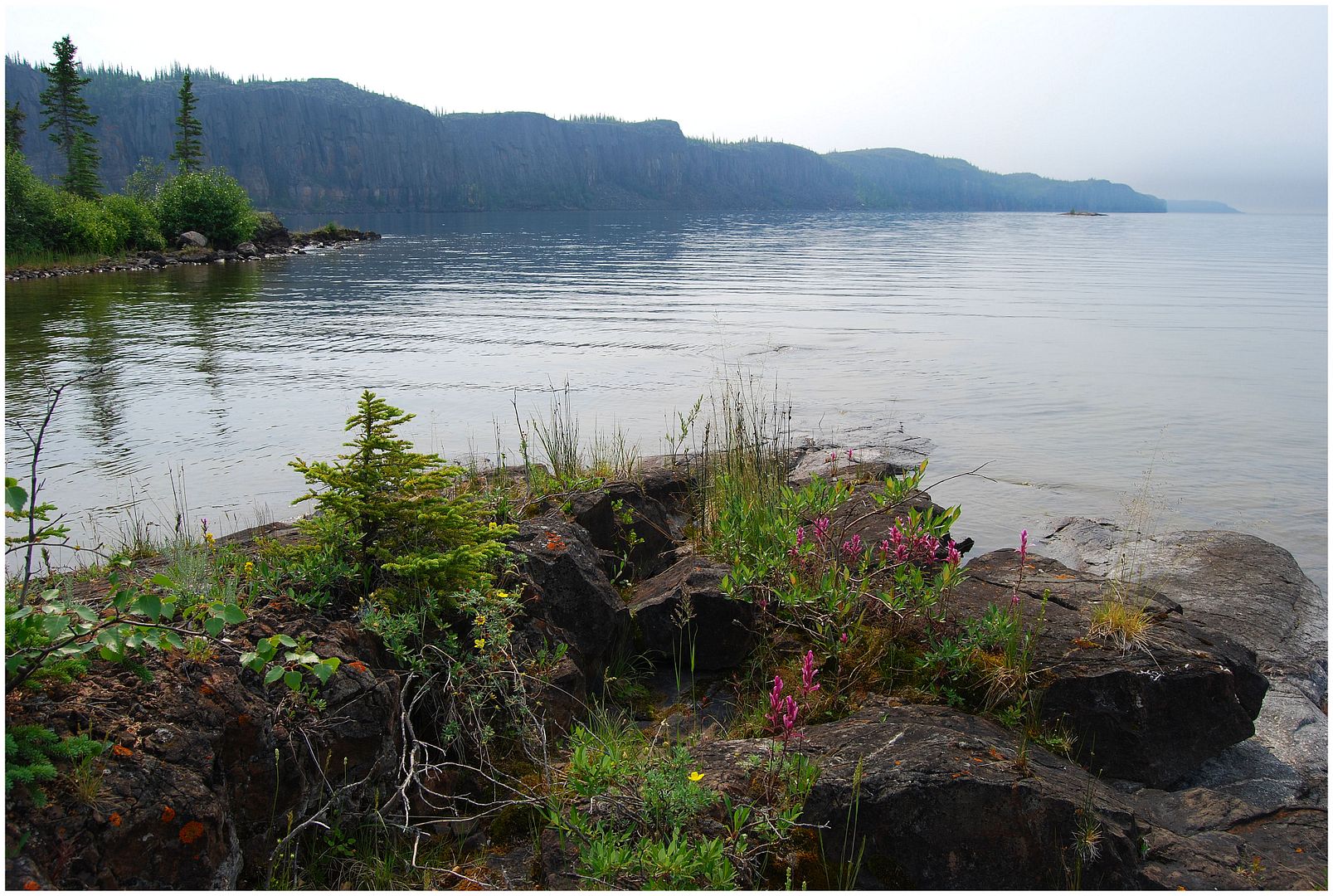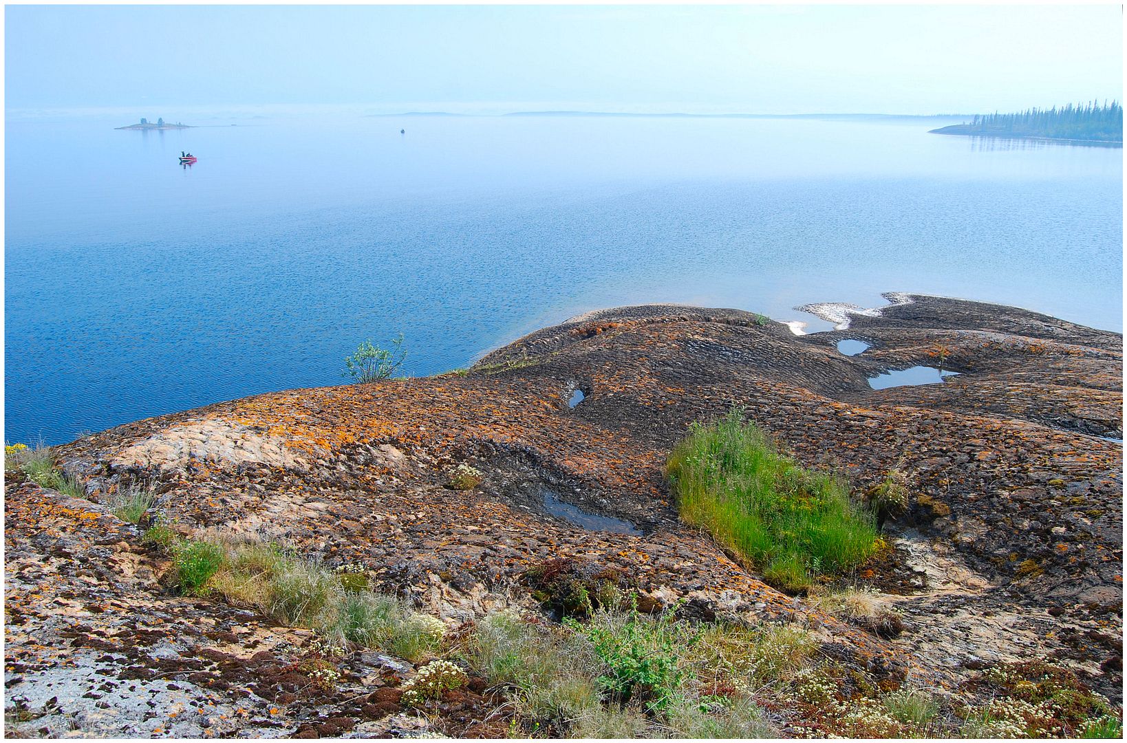 Ashore Bren set off to collect things as she often does, while I inspected with the camera. The plentiful flora growing about this particular site was interesting. Such a shortened growth season and seemingly little soil, these arctic gardens are quite an amazement… In the meantime, within less than an hour Adrian whipped up an incredible honey garlic lake trout feast for us, cleaned up the entire mess and had the boat repacked to get us back out fishing.