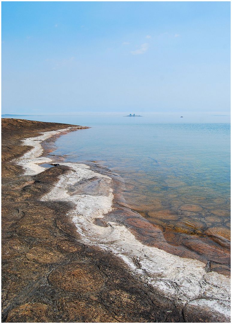 Beneath our feet we were standing on an ancient seabed of fossilized coral reef. The entire island made up of stromatilite, and one of the better geological sites of such a thing on this earth. Rock hard, the circular formations were the ground, and they appeared either like flattened tree stumps or humps clustered tightly together. To touch many of them, they were quite smooth, as if varnished. This easily had to be one of, if not the coolest and most picturesque shorelunch spots I have ever visited.