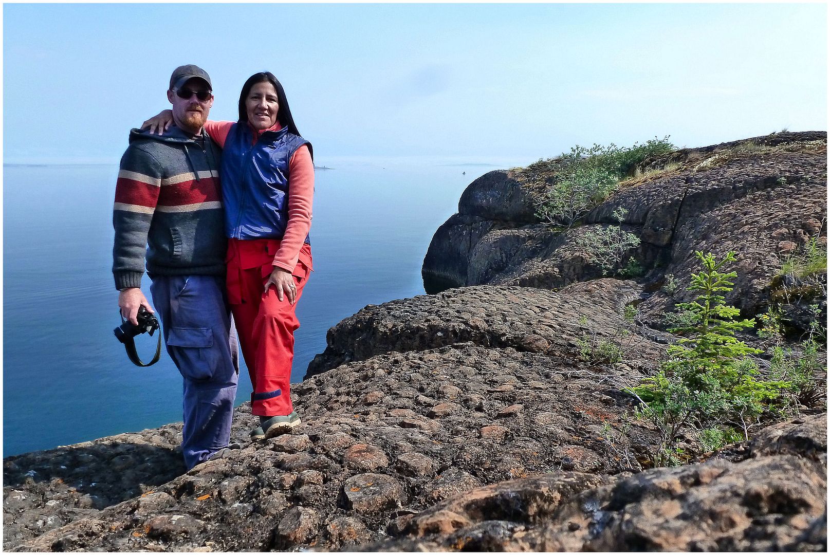 The stromatilite coupled with the surrounding cliffs, flora and gin clear waters of Slave, the colors under blue sky sunlight created one tropical-like arctic oasis. Walking the ledges I surely forgot all about fishing, work woes back home, bills to pay, my stomach grumbling… it is a truly captivating place. Bren and I were very happy to be there and living in it together.