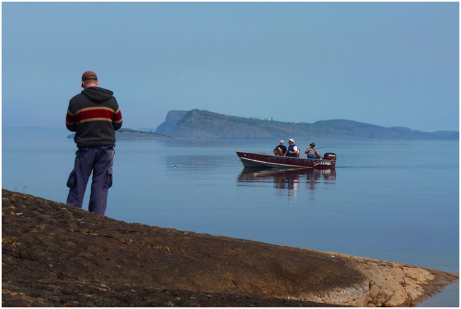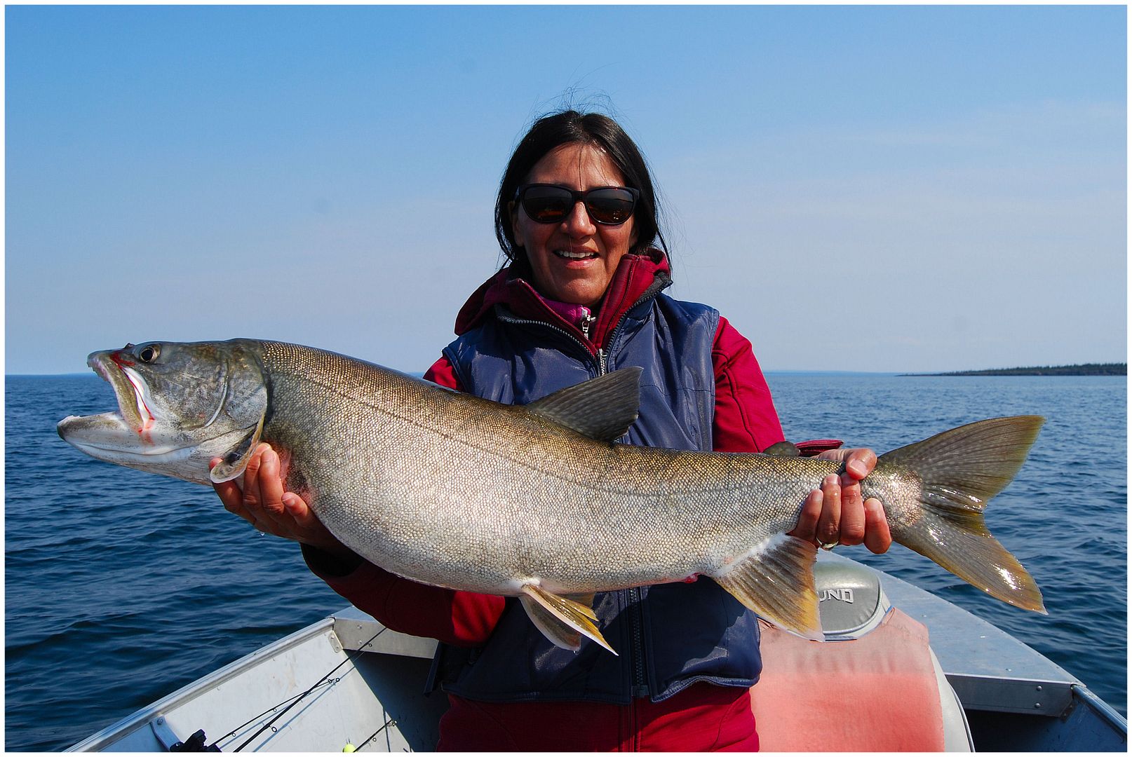 Well, if I didn’t get ripped by some gnarly laker that in an instant took half my line from the reel before cutting it over some rocks. Going back to the boat, retying and finding a new spinner, I was far too slow in returning to ever hook that fish again.