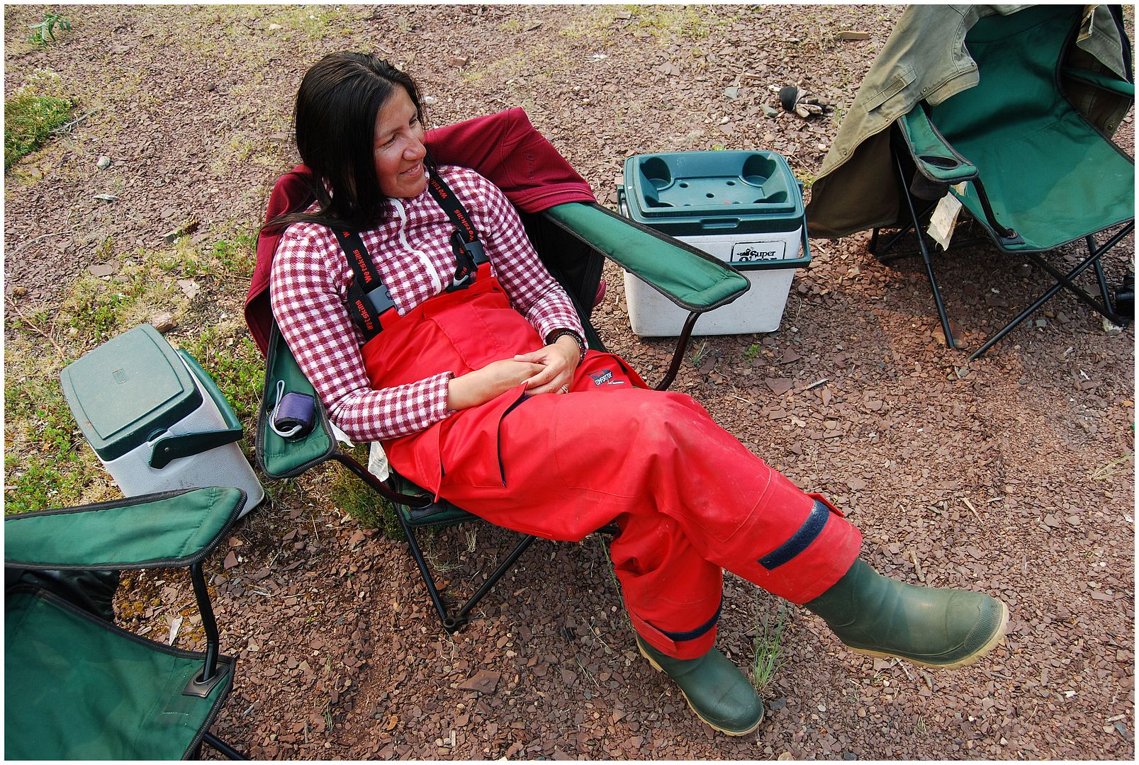 Bren is an exceptionally durable and patient traveler. On past fishing trips, whether it be camping for days up the Moose River or tributaries during colder spring and fall seasons, slogging through Frontenac portages during late pregnancy and scorching summer heat, ice fishing all day in a -28C blow or, casting week long through trying August wind and rains on an angry Kesagami Lake, Bren proves to be a much stronger woman and heartier fishing buddy than most, if not all of my man friends. Not only this, she tends to crush the bigger fish anytime we’re together. A 21-pound arctic char, 48-inch pike and 28-pound lake trout being only a few of the exceptional catches she calls personal bests. It amazes me how quickly Bren adapts to new angling experiences and any challenging environment, rarely if ever whining when the harder times or fatigue set in. There is no one I would rather have at my side, she is an incredible and loving life partner and, she can fish.