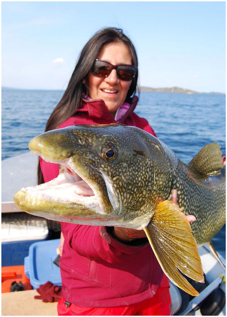 But before long Bren adapted. Bottom contact, subtle lifts with the odd bigger jig and, the occasional reel rip to surface and hard drop back, jigging lakers came to her. One thing she needed no practice with was her hooksets, Adrian can attest to that as well. When Bren sets a hook she can go from sitting to standing, while spinning 180 at the hip and driving a two-handed skyward rod sweep all in one instant motion. Her martial arts training put to its best use in my opinion. The whole move is actually something wicked to witness and I did try to get video. Knocking fish out is her specialty.