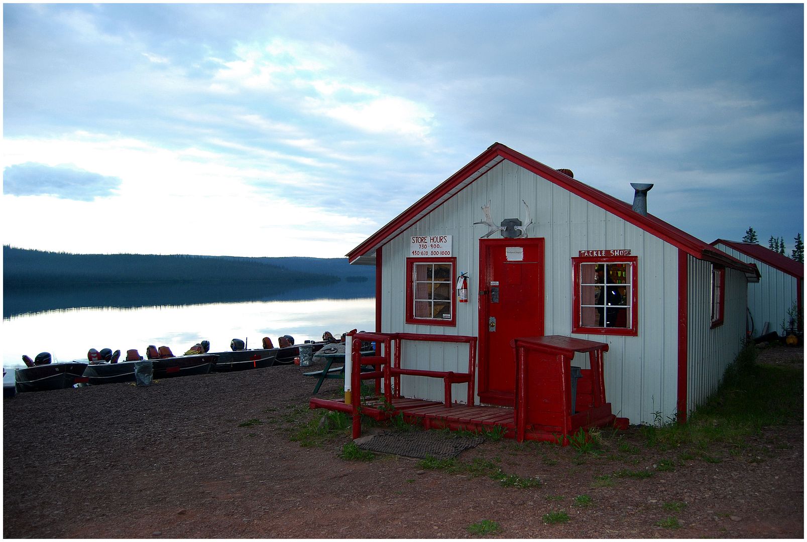 Walking the grounds I stopped in the store to browse for a souvenir or two, but instead sitting enjoying a drink found our Great Bear Lake guide of three years ago Eddie in company of Adrian, Bob and shopkeeper Marshall. Eddie talking of fish, a 45-pounder he caught solo this day, a little of his twenty years guiding for Plummers, and of the memory of Bren’s battle with what he figured was one of the three biggest lakers ever hooked in his experience, the fire was temporarily forgotten. Like Bear’s Larry Willett the old guide, Adrian our young and ambitious guide, Great Slave’s veteran guide Bob, and Eddie our seasoned guide from recent past, these Plummer’s doods working 12 hour days, 7 days a week, two months straight, peak quite an interest and inspire me. Store closed and unable to get enough, I poked my head over to guide city and paid a visit.
