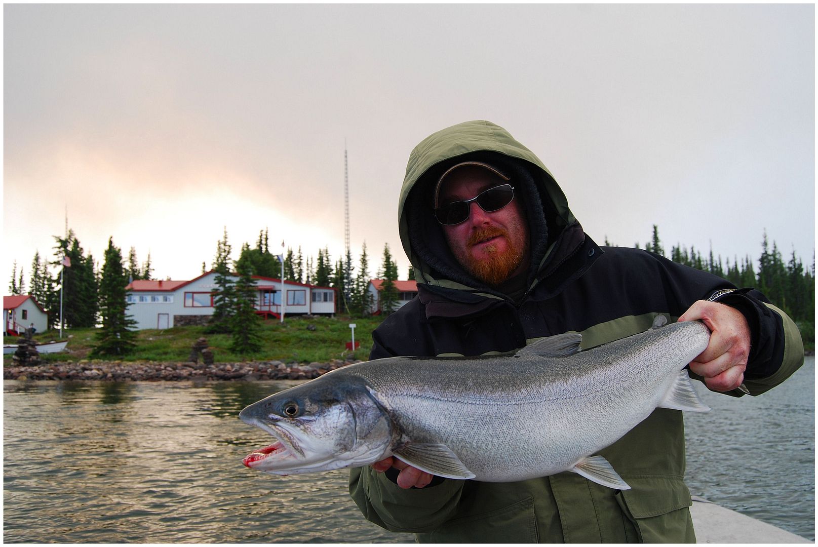 Decision had been made that come the expected morning flight, most of the staff except six remaining would be evacuated. Guides, servers, housekeeping and all incoming guests would be re-routed to Great Bear Lake and even the Tree River for the week. Helluva consolation prize that would be eh!?! On the troll this year at Bear, numerous 50 pounders have graced gunnels