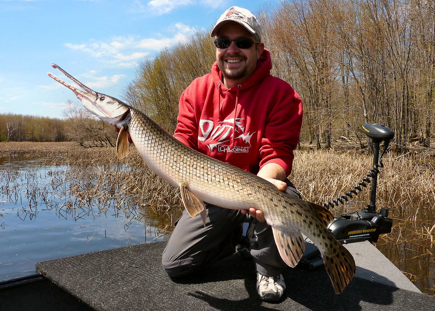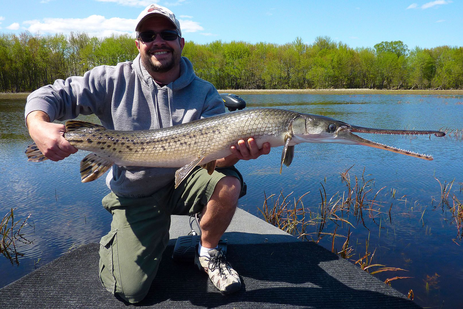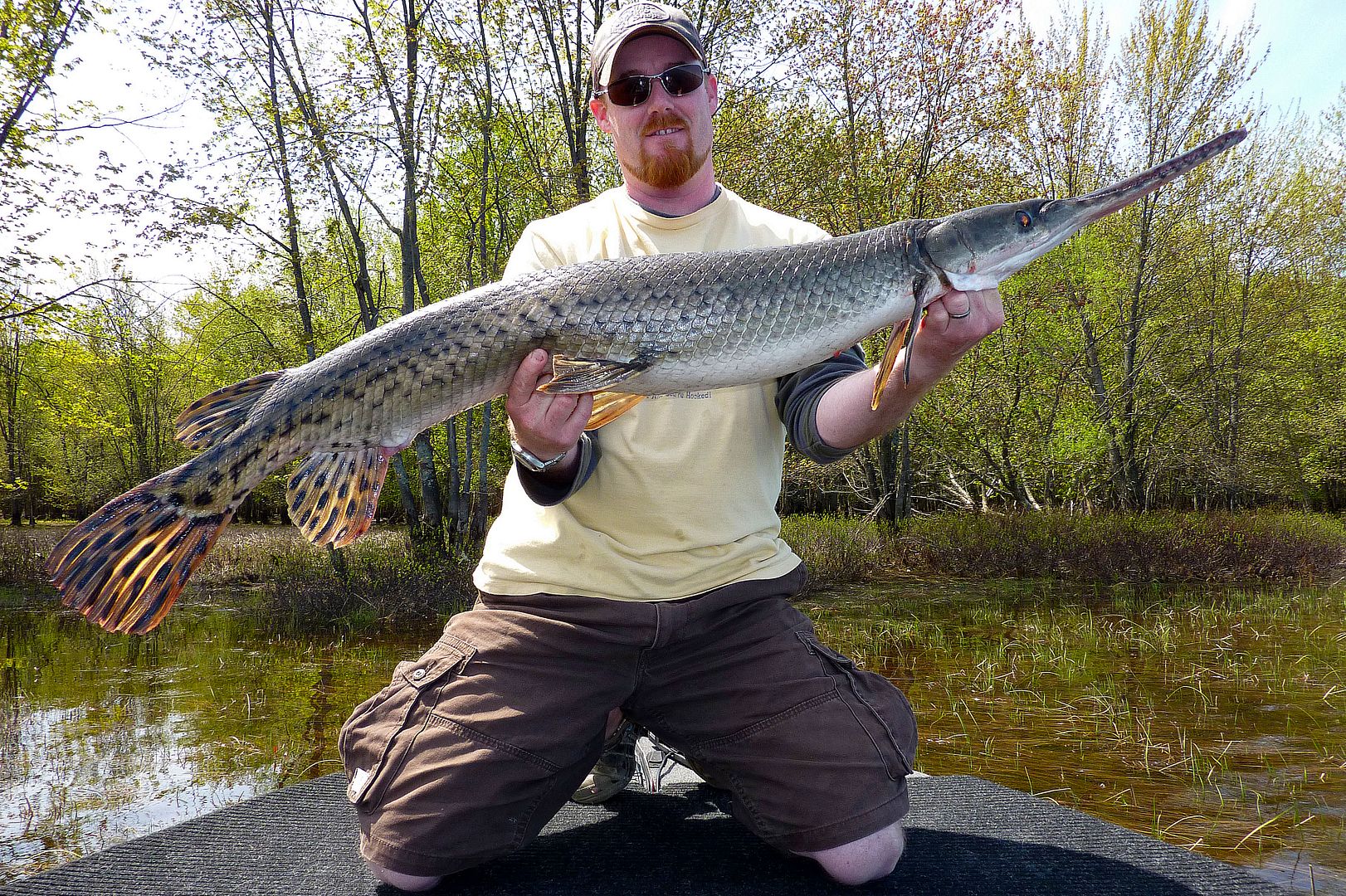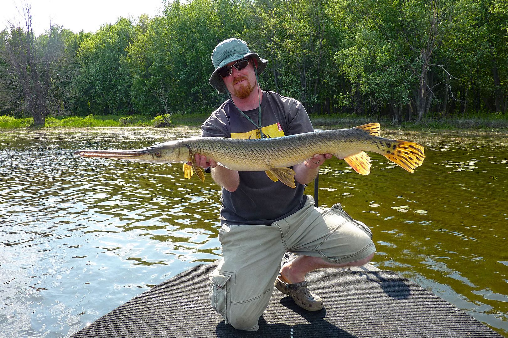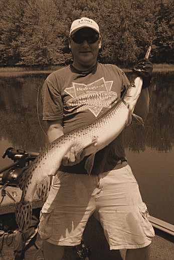 If the older Valley gar reports were still alive with Fish-Hawk, there’s one lad you’d see or read of time and again during those earliest days. Yet, there in the F-H gallery though, one can still find Patty, the MuskieMagnet, showing off with what are the first pics of the biggest of gar. Seemingly always aboard his Lund in those times, some old members out with Pat can be found in pictures taken from his boat too. Really, as far as gar fishing in the Valley is concerned, during our online era, the dood is likely the pioneer whom from his kindness opened some of our eyes and lead a number of people to their first experiences with the fish. Since I’ve known him personally, he has always been willing to share in great fishing and comes by being the “Magnet” honestly, as he’s not only a magnet for muskie, but of many other fish as well. He has a drive and a knack for catching the big ones, and one can respect Pat as he fishes for all the right reasons.