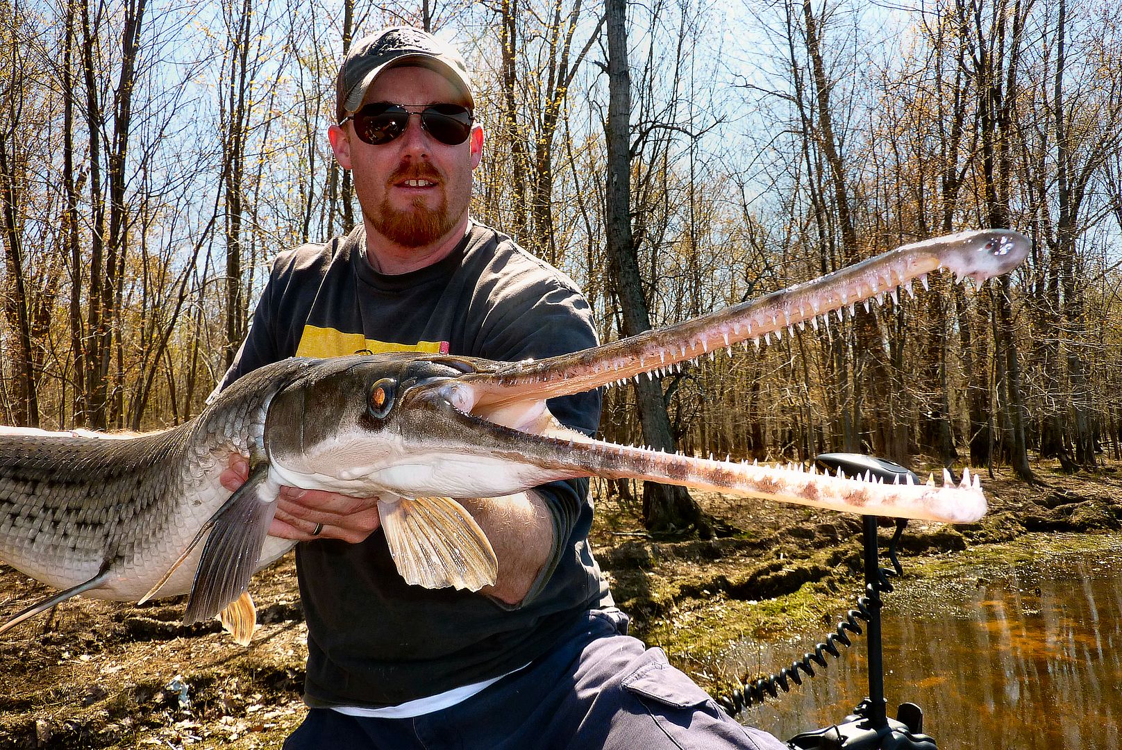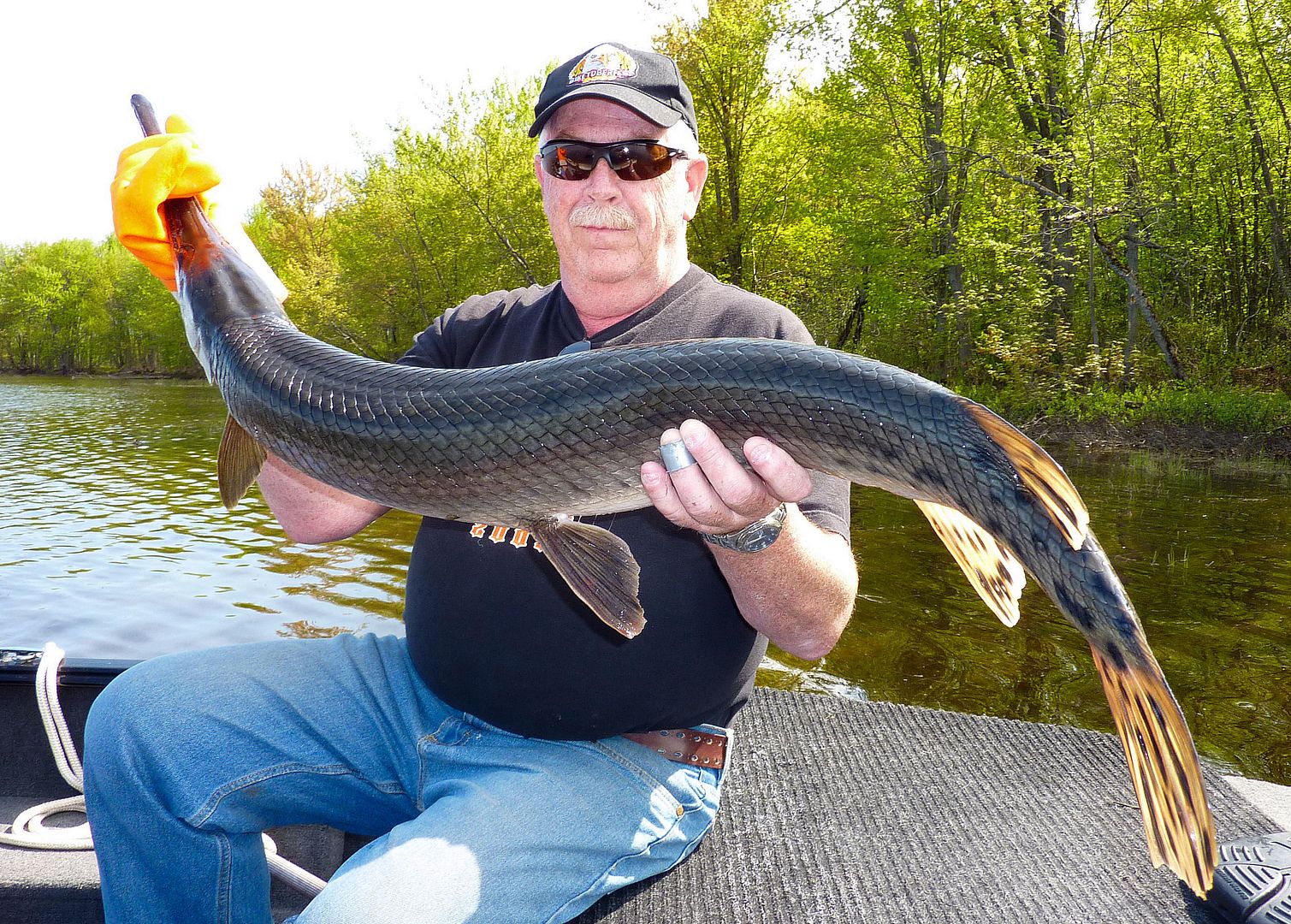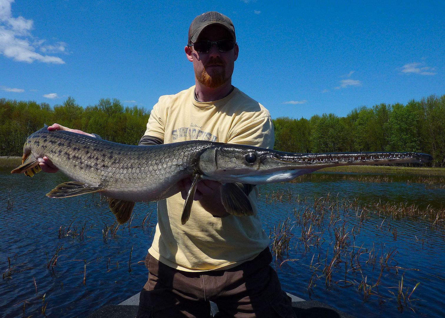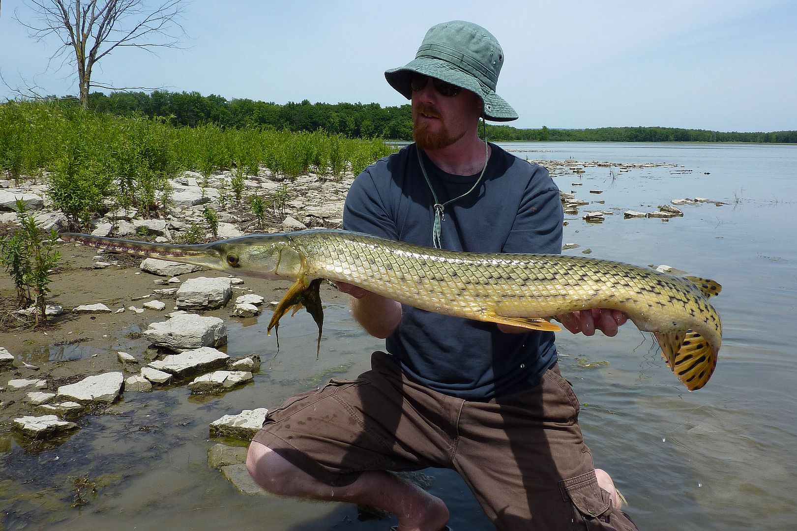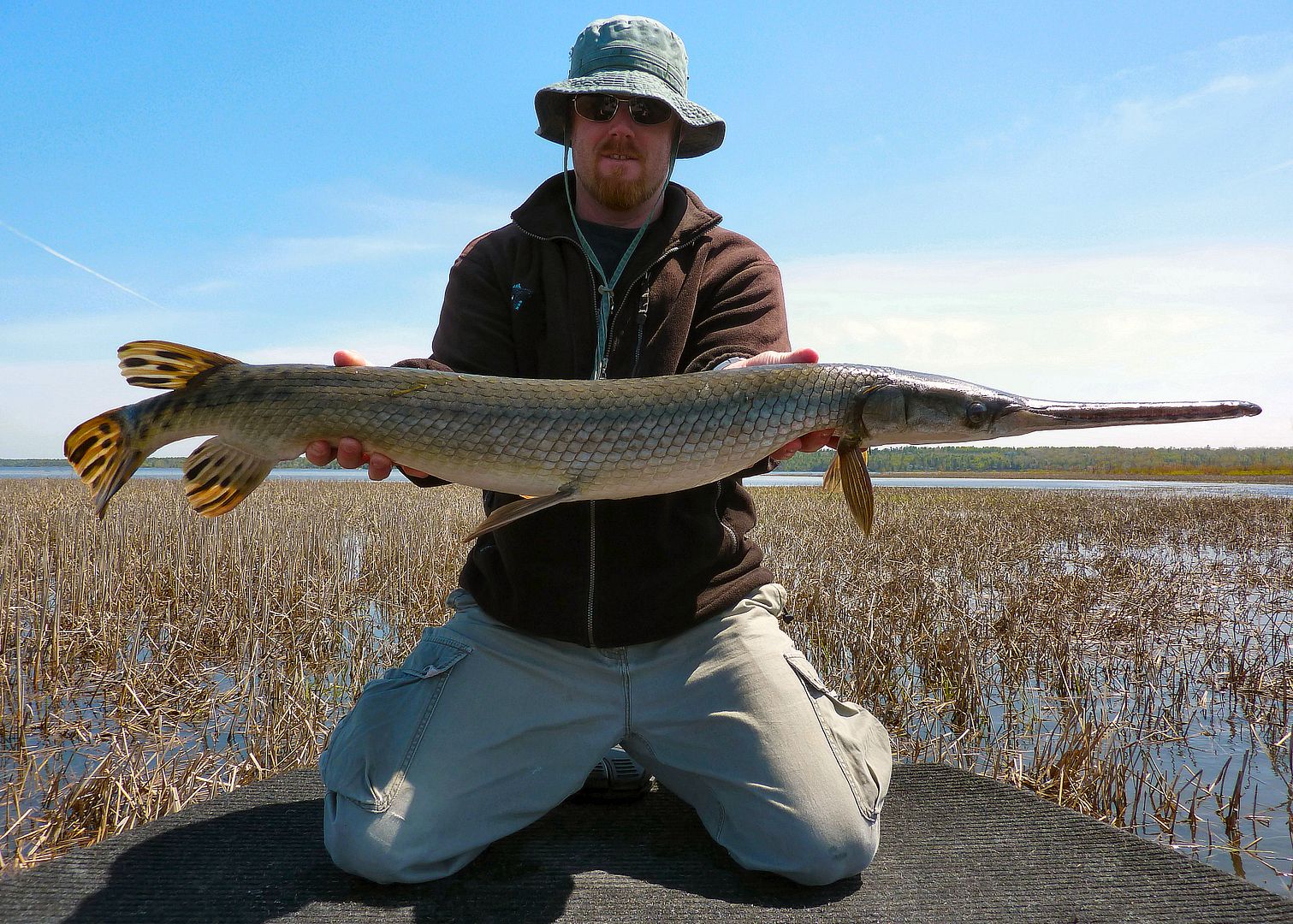If the older Valley gar reports were still alive with Fish-Hawk, there’s one lad you’d see or read of time and again during those earliest days. Yet, there in the F-H gallery though, one can still find Patty, the MuskieMagnet, showing off with what are the first pics of the biggest of gar. Seemingly always aboard his Lund in those times, some old members out with Pat can be found in pictures taken from his boat too. Really, as far as gar fishing in the Valley is concerned, during our online era, the dood is likely the pioneer whom from his kindness opened some of our eyes and lead a number of people to their first experiences with the fish. Since I’ve known him personally, he has always been willing to share in great fishing and comes by being the “Magnet” honestly, as he’s not only a magnet for muskie, but of many other fish as well. He has a drive and a knack for catching the big ones, and one can respect Pat as he fishes for all the right reasons.