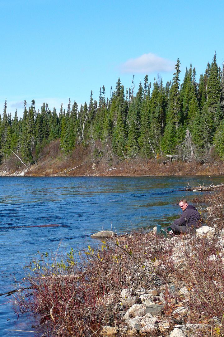 One awesome area of the river is an expanse where an old forest fire burned. Another is a stretch where limestone boulders line the river banks. For the muskeg rock is a rarity. The river in these parts was deep and fast. Coming down river a good gusty cold wind pushed us along but it was in these sections things seemed even more frosty. Kind of eerie to me. Some locals think the Cheepas is haunted. Had the sun really been out shining on these white rocks they would have likely given a whole different feeling.