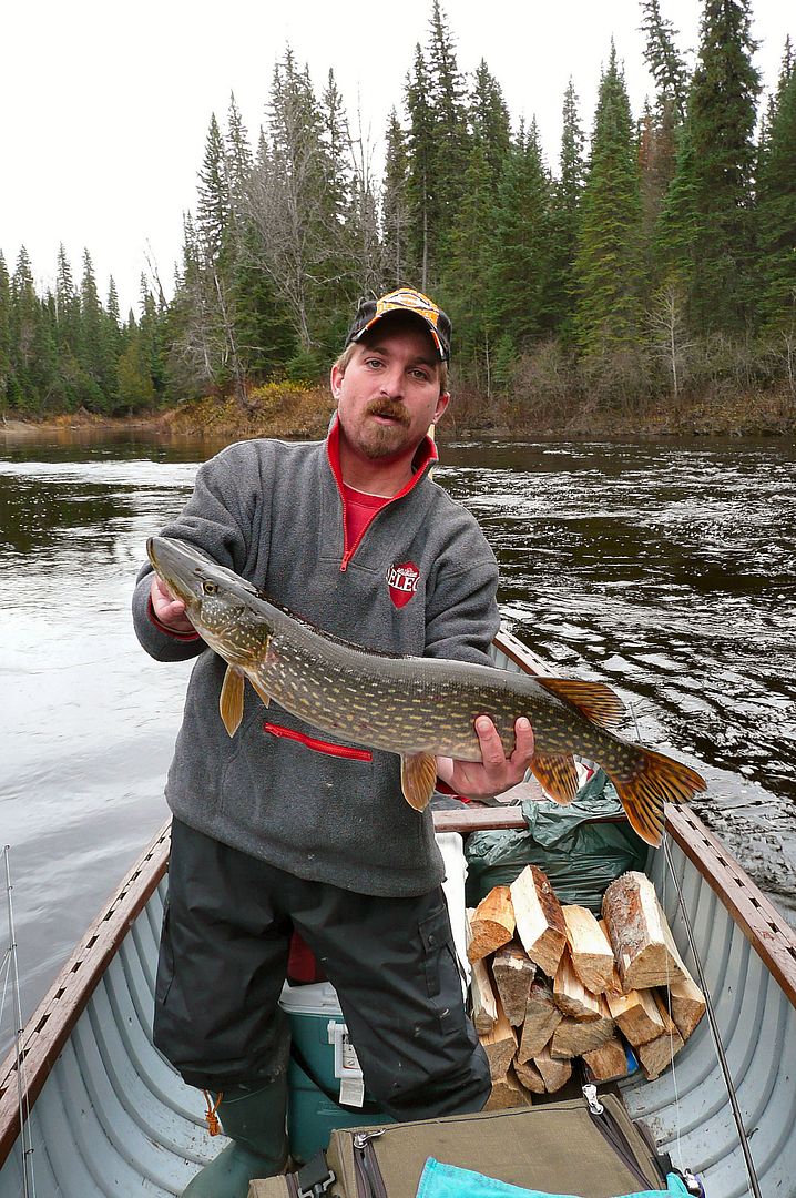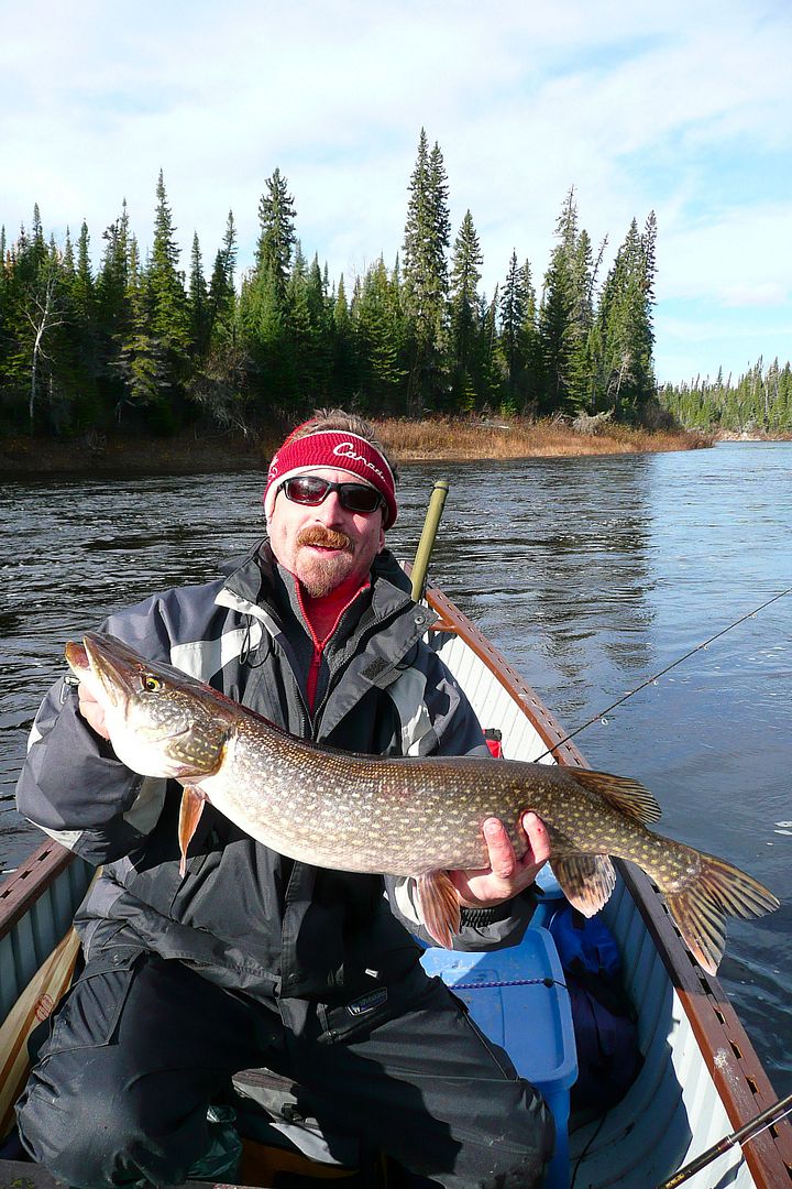 Pike were on fire. We fished basically the two “S” bends marked as campsites on the map and pounded the numbers. Some good sizes, Float set the hook into one big pike too and it was nearly an instant bite off right through the 100lb braid. (braid leaders might work for musky, but after this summer losing a number of medium to big pike on Kesagami to braided leaders I’ll never use the junk because there is absolutely no trusting it) Float switched to a black nylon coated steel leader afterwards and didn’t lose another. Him and I both picked up several nice fish throughout the day. For pike numbers, I’ve only ever done better on the Ekwan. These pike were ruthless in the cold water too, a real treat.