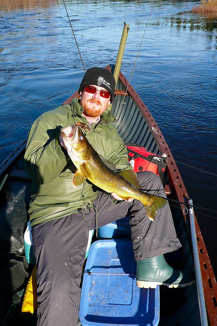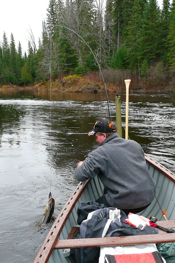 One thing about this cold deep section was an eddy we found at one of the bends. After a couple casts with the Williams I knew walleye were there and tapping away at my big lure. Float then sets the hook into a snot rocket.