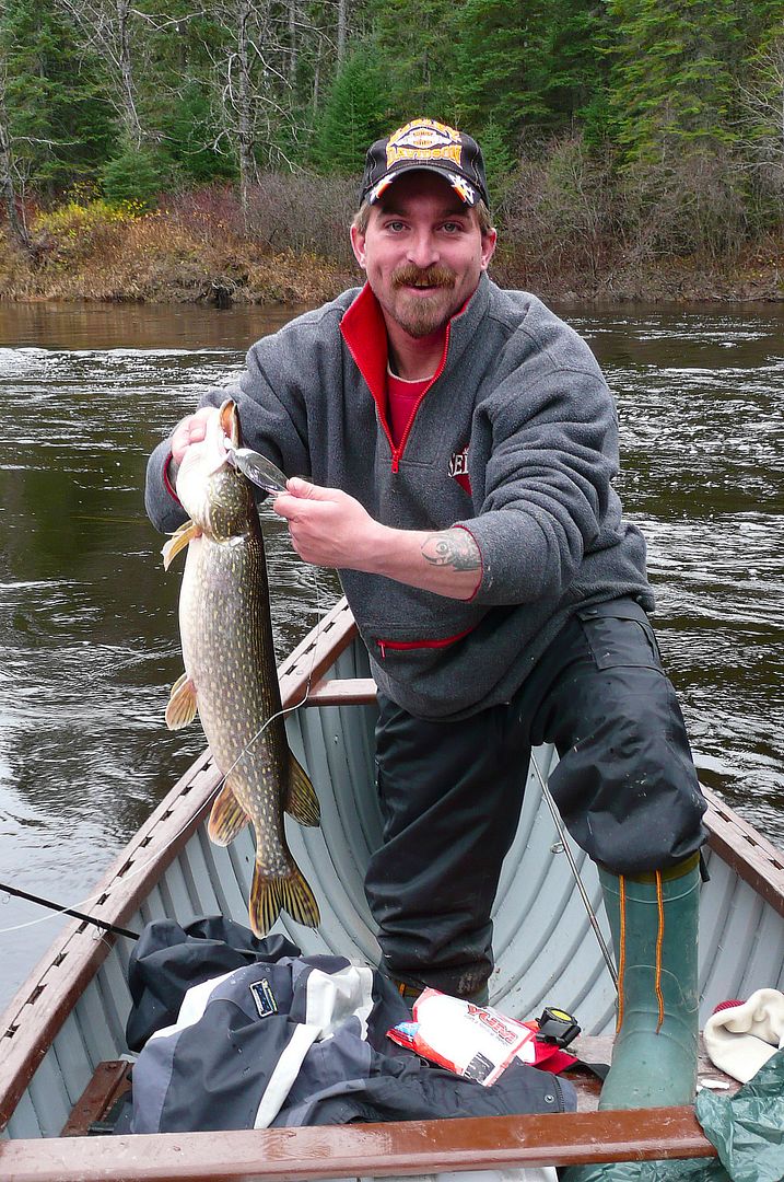 Float and I warmed up and ate, and instead of sitting around we toured over to a few different back bays on the Moose River nearby the cabin. We sort of stumbled into a new spot on the troll and fished the crap out of this shallow, dying cabbage filled bay. Johnson spoons were working great for me and I picked up a dozen or so pike, Float on the other hand was losing fish after fish with different lures. One bigger pike mid to high 30 inch range took a Flappin’ Shad of his right at shore and ran his tight dragged Abu and 80lb Power Pro for a good tour right under the boat. The shallow water and rod buckled right over the gunnel and the fish had him at its mercy, he couldn’t turn it around and so it came unpegged. Float just couldn’t believe the strength of these northern river pike, in fact, he kept bringing that up with pretty much every fish he caught on the trip. “They just smoke and hammer the lures. Even the snot rockets are nuts. They’re taking line off the baitcaster and I have the drag set to it’s tightest. This is a musky outfit” I think he liked the northern fishing up here. I think I mentioned it a few reports back how tough I find them this time of year.